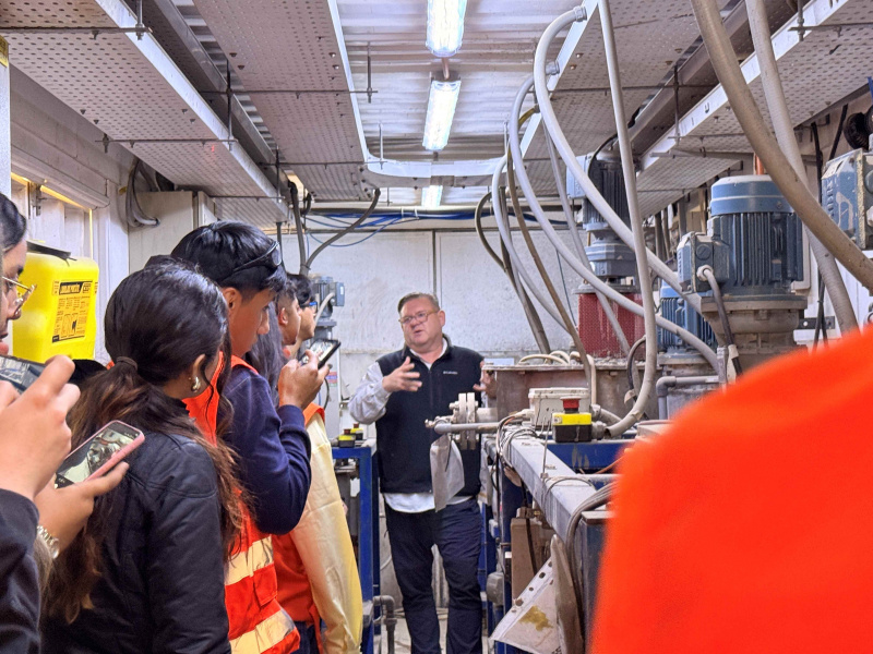 En terreno, la visita técnica fue guiada por Quentin Graff, Superintendente de Procesos, donde la Planta Piloto, sus equipos y laboratorio fueron el centro de atención de los jóvenes. Aquí apreciaron como EcoMetales impulsa la economía circular en la industria, mediante análisis, pruebas, investigación e innovación.